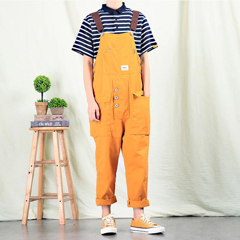 A functional one-piece designed with adjustable shoulder straps and a structured bib front. The multiple pocket details provide practical storage, while the straight-leg cut creates a clean and balanced look. Its relaxed structure makes it suitable for everyday wear and casual styling.